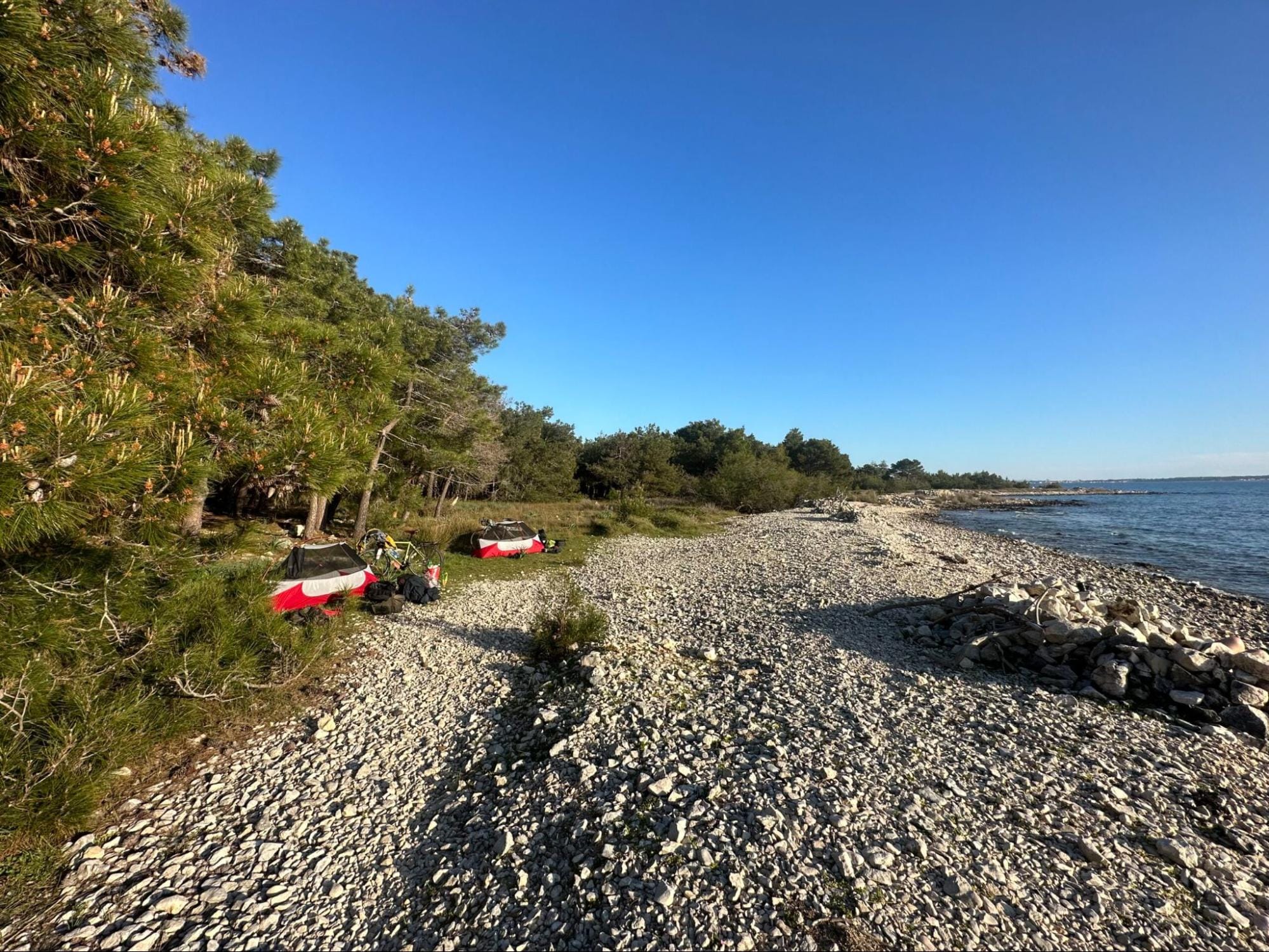 Remis de toutes ces émotions, en avant vers la côte Adriatique. Il y avait un marquage assez subtil entre l’Italie et la Slovénie, la frontière avec la Croatie nous a surpris pour d’autres raisons. Alors que la route traversait une forêt « réserve nationale », le premier élément marquant sont les ordures. Partout où nous regardions au delà du bord de la route, des déchets en pagaille, tout ce qu’on peut trouver dans une déchetterie déversé aléatoirement le long de la route. Malheureusement, ces vues navrantes nous suivront partout en Croatie (sauf en ville). Nous avons rapidement noté la différence de niveau de vie entre croates et slovènes à la vue de l’état des habitations ou celui des routes. D’après les statistiques, le PIB par habitant est proche du double en Slovénie, ce qui pourrait nous aider à expliquer l’impression de traverser un pays où la situation économique paraît beaucoup moins favorable.