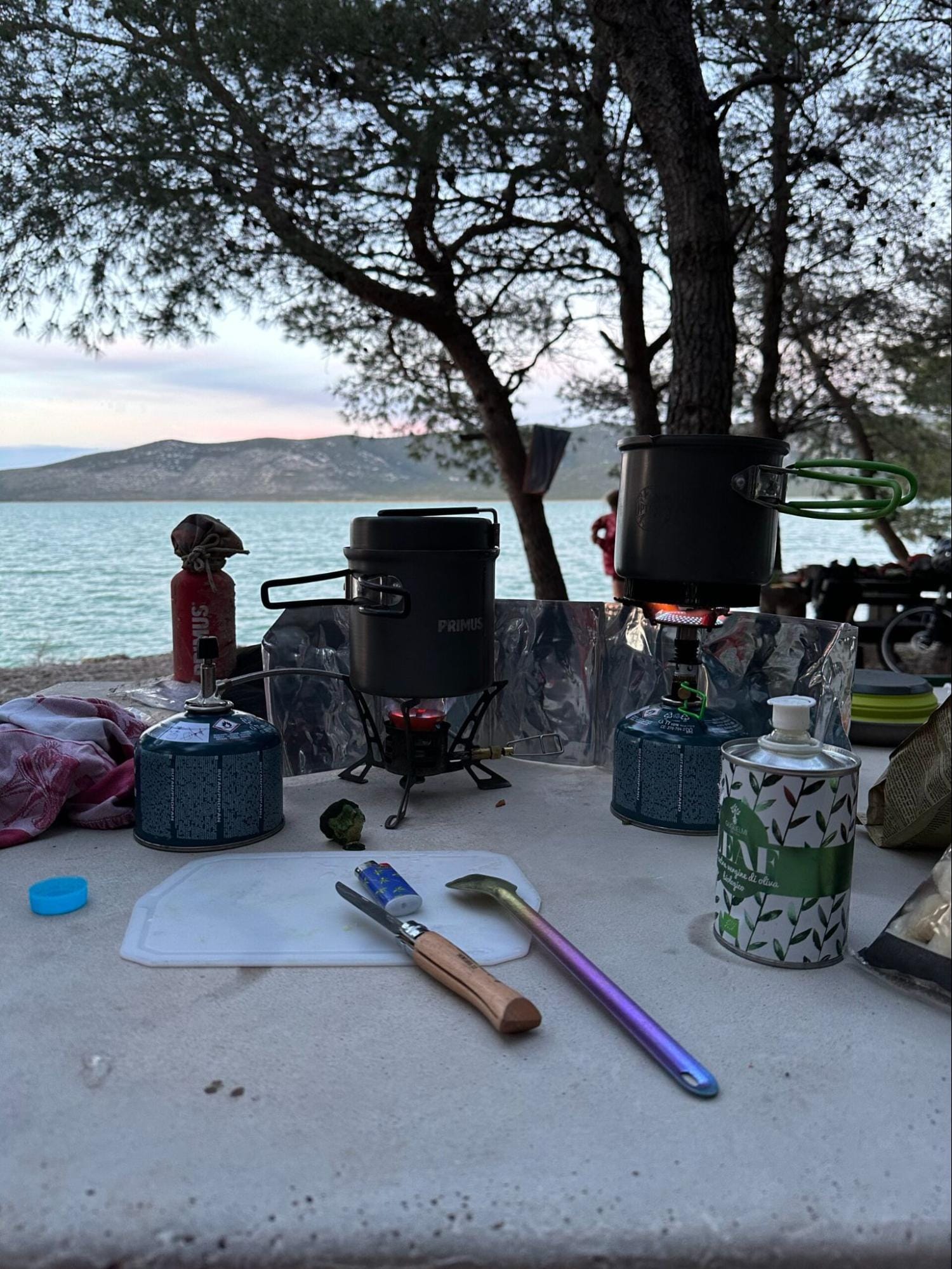 Se conclue déjà une nouvelle semaine d’aventures cyclo-touristiques ! Semaine bien imprégnée de côte Dalmate et de rencontres avec d’autres cyclos (enfin). C’est lors du jour de pluie (voir épisode précédent) que nous avons rencontré deux allemandes qui nous ont ouvert les portes d’un warmshower très accueillant, Manuel, un italien perdu dans la région slovène de Sežana. Son salon est rapidement devenu un foutoir indescriptible, rempli des affaires semi-mouillées de quatre cyclos. Un véritable exemple de biker-trashers (comme dirait Clara). Pour préciser, le biker trash, provenant de son équivalent pédestre hiker trash est une capacité insoupçonnée des cyclo-touristes à pouvoir mettre en quelques secondes un bordel inimaginable autour d’eux et ce sur plusieurs mètres carrés. A chaque fois que nous nous arrêtons, pour un picnic ou pour un bivouac, c’est comme si nos sacoches explosaient sur place pour répandre leur contenu au sol. L’art du cyclo, c’est de rester maître de toute cette apparente désorganisation et de pouvoir en quelques minutes (on ne parle plus de secondes malheureusement) remettre de l’ordre dans le chaos. Il y a encore beaucoup d’autres aspects caractérisant le biker trash, parfois moins visibles, nous y reviendrons.