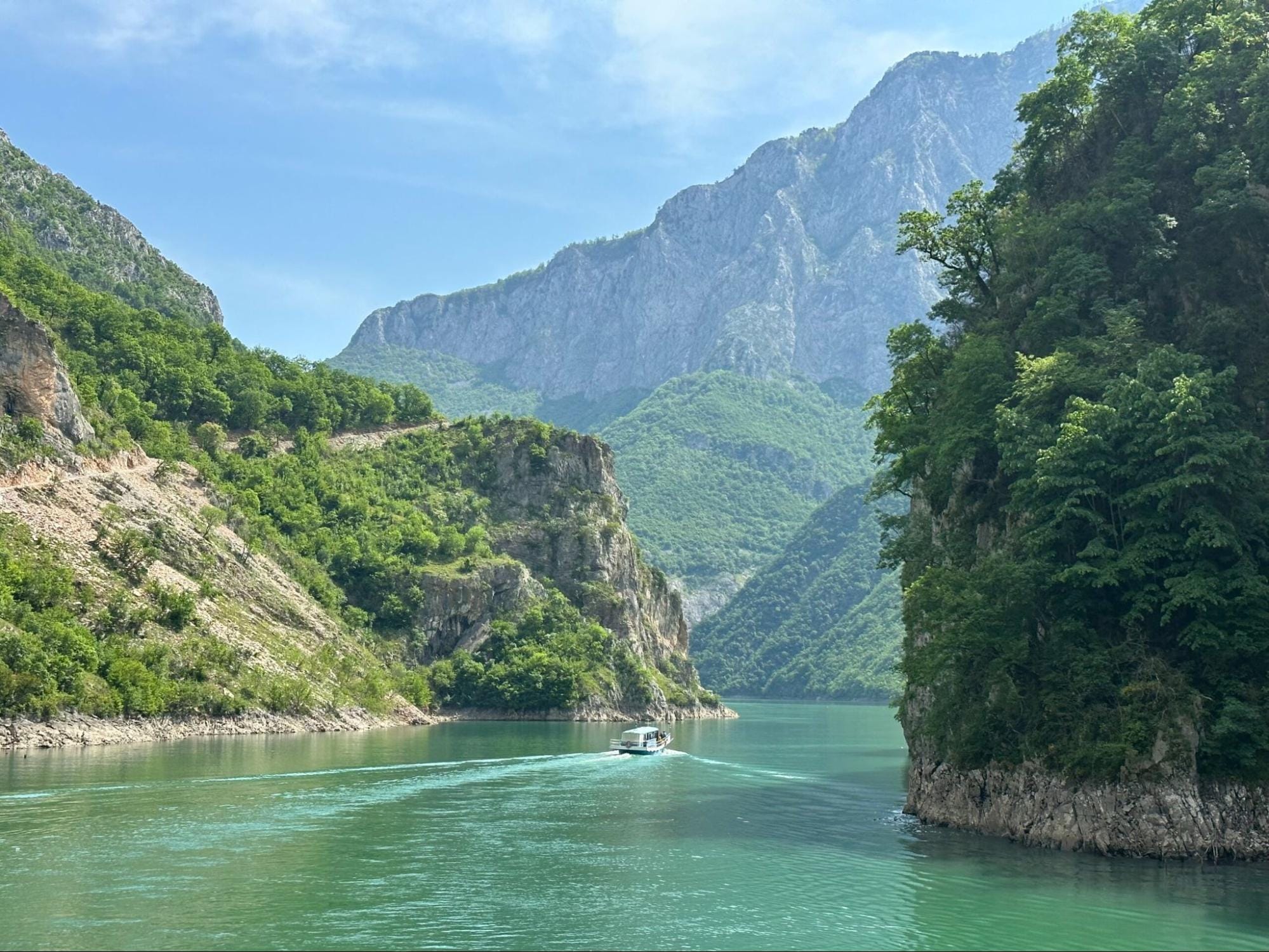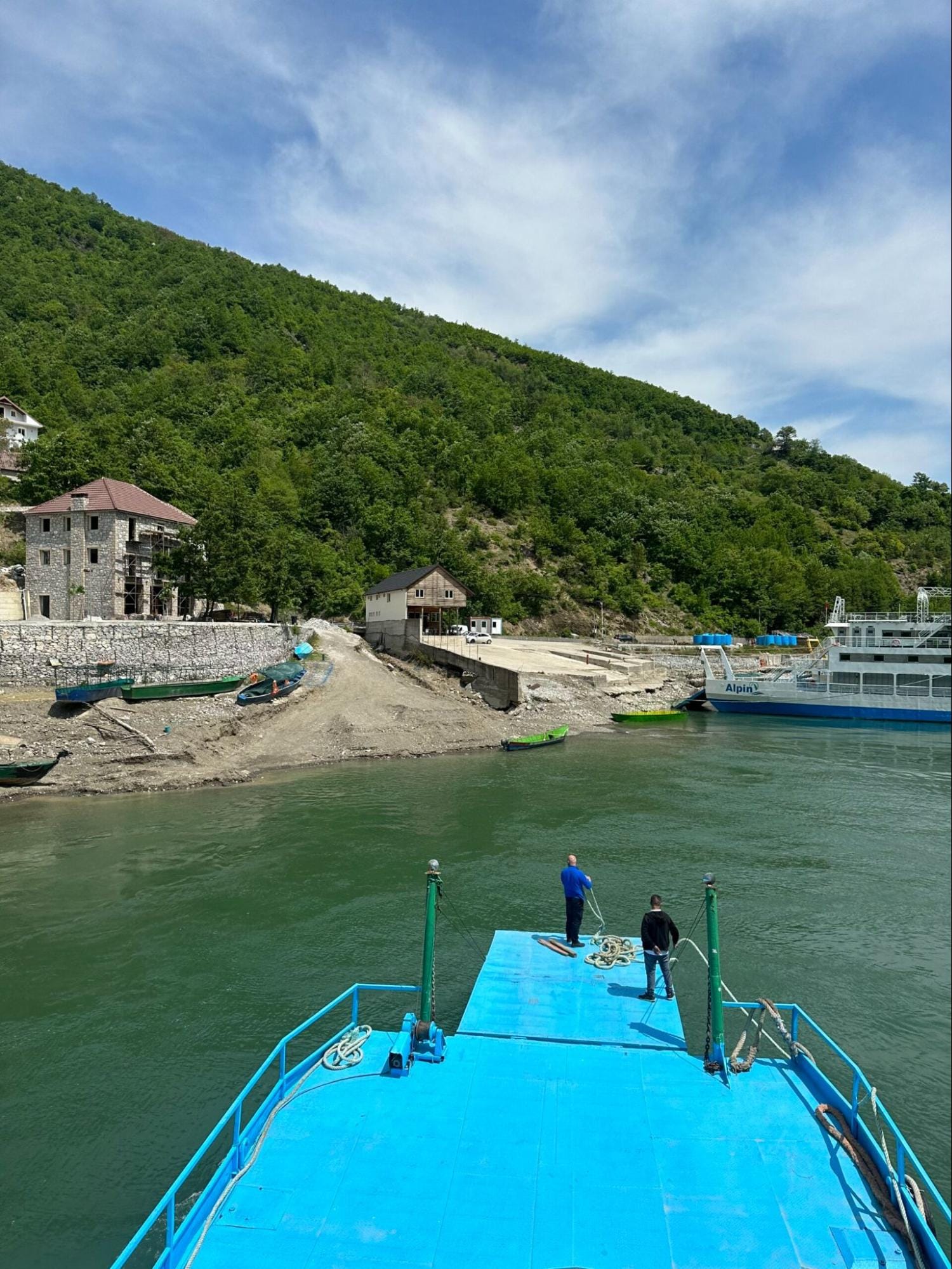 Très vite nous arrivons sur les rives d’un très grand lac artificiel, le lac Komani. Nous le traversons à bord d’un ferry fabriqué maison : les sièges sont ceux d’un autobus et le plancher métallique bombé se plie sous nos pas. Au delà du lac, nous faisons incursion dans la pluvieuse vallée de la Valbona. Repos, nous sommes épuisés par les beaux reliefs de la région. Le dénivelé n’a pas d’égal pour épuiser un cycliste.