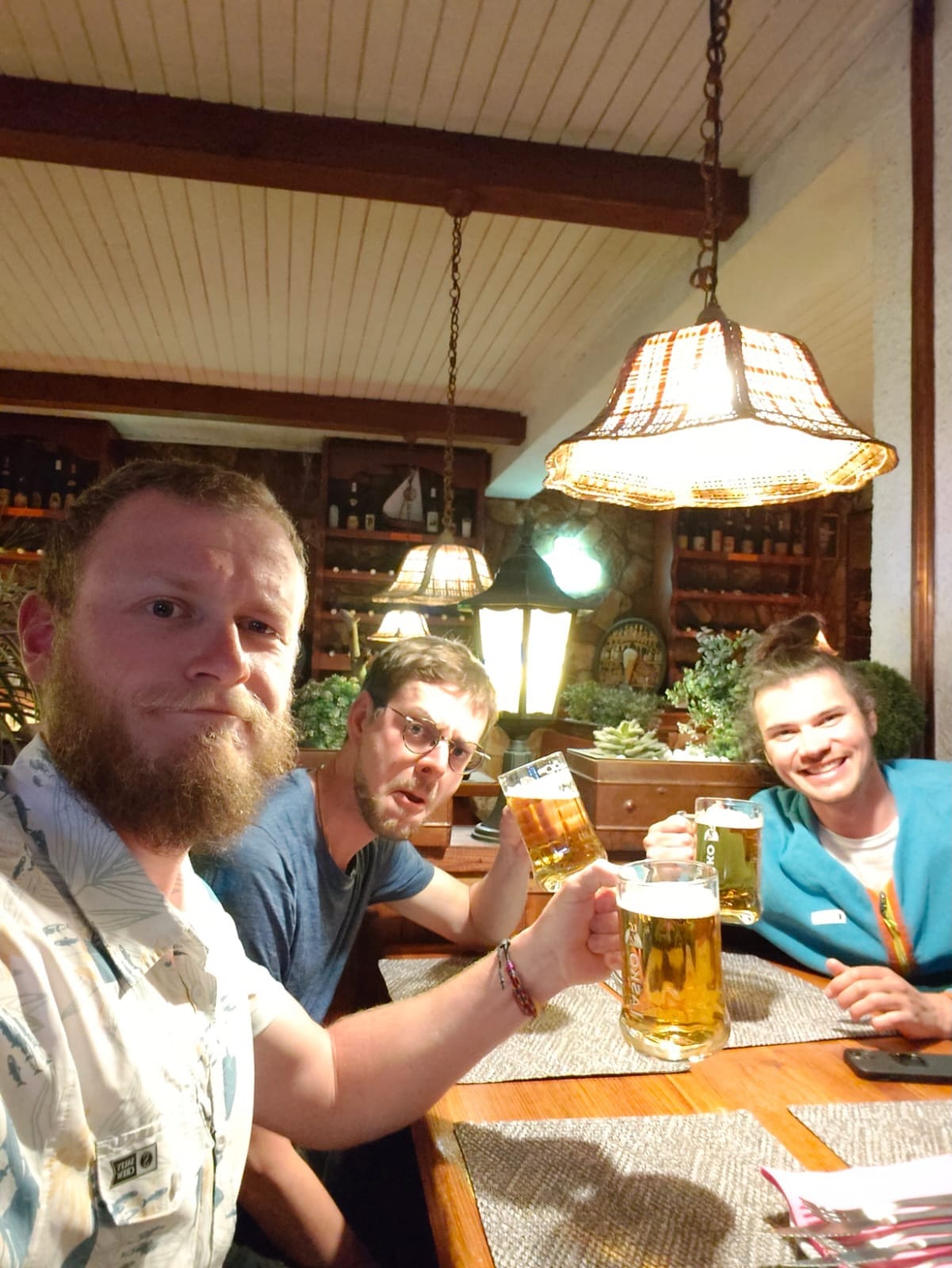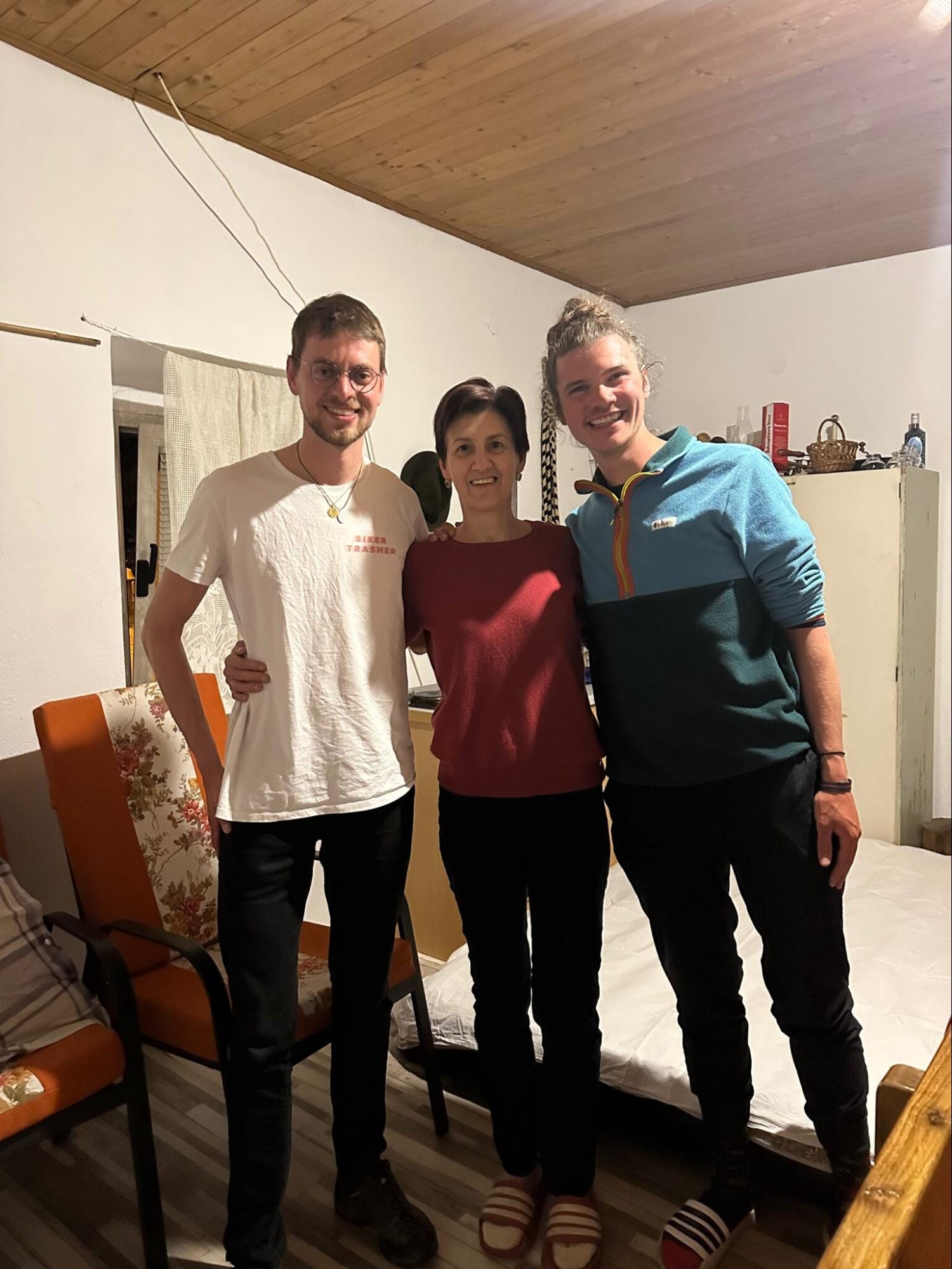 La ville de Vrgorac juchée du haut des dernières montagnes officialise notre entrée dans la plaine de ce nouveau pays. Après le passage de la frontière obligé, car nous sortons de l’espace Schengen. La journée étant déjà bien remplie de kilomètres, nous commençons notre quête pour un bon spot de bivouac. Au bout de quelques minutes nous apercevons au loin une station service qui paraît sortir de nul part, mais surtout un attroupement de gens sous le toit plat de la station et tout autour. Nous pensons d’abord à un mariage, mais pourquoi le cortège se serait-il arrêté tout entier pour de l’essence ? La curiosité nous pique, alors on s’approche. Très vite on comprend que c’est la station elle-même qui est célébrée, inaugurée. On nous fait signe et en quelques secondes on se retrouve un verre à la main à parler anglais à des gens de notre âge très intéressés de nous voir débarquer là. S’en suit d’autres verres, car il n’y a pas que de la bière dans ce pays, il y aussi du vin et de l’alcool de cerise. Au bout d’un moment nous commençons à parler à Mijo et son père qui nous proposent très vite de passer prendre une douche chez eux (je vous laisse imaginer la raison). Arrivés chez eux nous continuons à être le centre d’intérêt commun, famille et amis de famille compris, tout le monde s’amuse à nous voir manger des tranches et des tranches de pršut maison (jambon sec d’Herzégovine, affiné 2 ans). Difficile de dire non, surtout que c’est excellent. Mijo et toute sa famille semblent nous accueillir comme des amis de longue date. Nous avons le souffle coupé de leur gentillesse et générosité. Après la nuit passée chez eux nous repartons repus d’un franc petit-déjeuner et munis de sandwichs préparés par Mijo. Sandwichs au pršut naturellement.