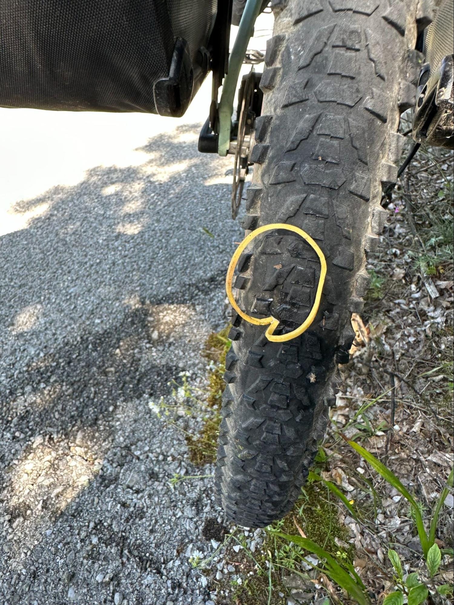 Voilà à peu près le bruit que fait un pneu dit tubeless, c’est à dire sans chambre à air, lorsqu’il crève à cause d’un trou un peu trop grand. Normalement, cette technologie révolutionnaire est sensée reboucher naturellement les crevaisons communes. Beaucoup de cyclistes recommandent ce système comme des prêcheurs du nouveau monde, « tu ne crèveras plus jamais » qu’ils s’amusent à répéter en boucle. Sauf que si je sais le bruit que fait un pneu tubeless quand il crève, c’est que c’est exactement ce qu’il s’est passé aujourd’hui.